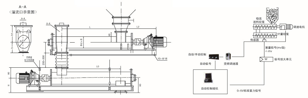 出料口上方設溢流孔,便于維護、標定 |
